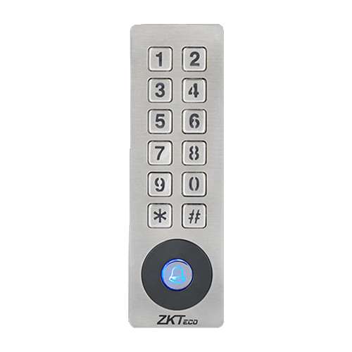 Dispositivo de control de acceso independiente a prueba de agua con una carcasa metálica IP65 y teclado. El dispositivo admite la verificación con contraseñas y tarjetas RFID. Se pueden utilizar como lector que se conecta con un panel de control o como dispositivo independiente de Control de Acceso.